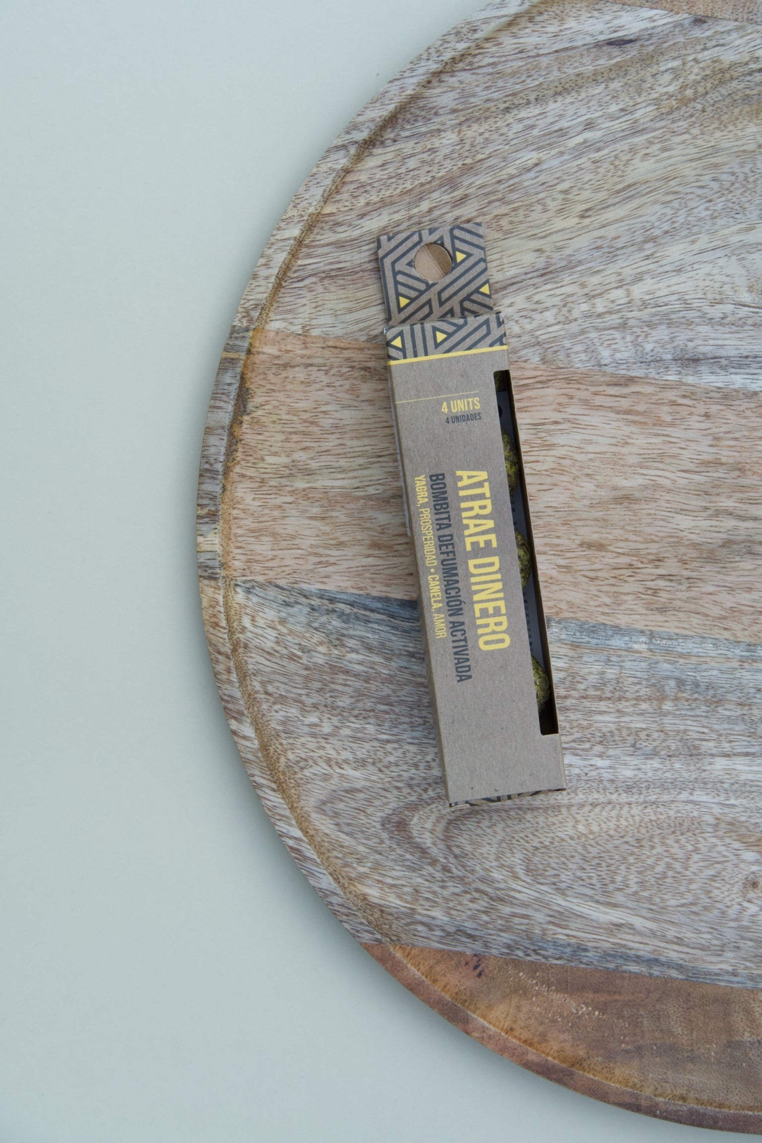 Bombita de Defumación Activada – Atrae Dinero · Sagrada Madre · Caja con 4 bombitas artesanales · Tiempo de quemado: 6–8 minutos aprox.