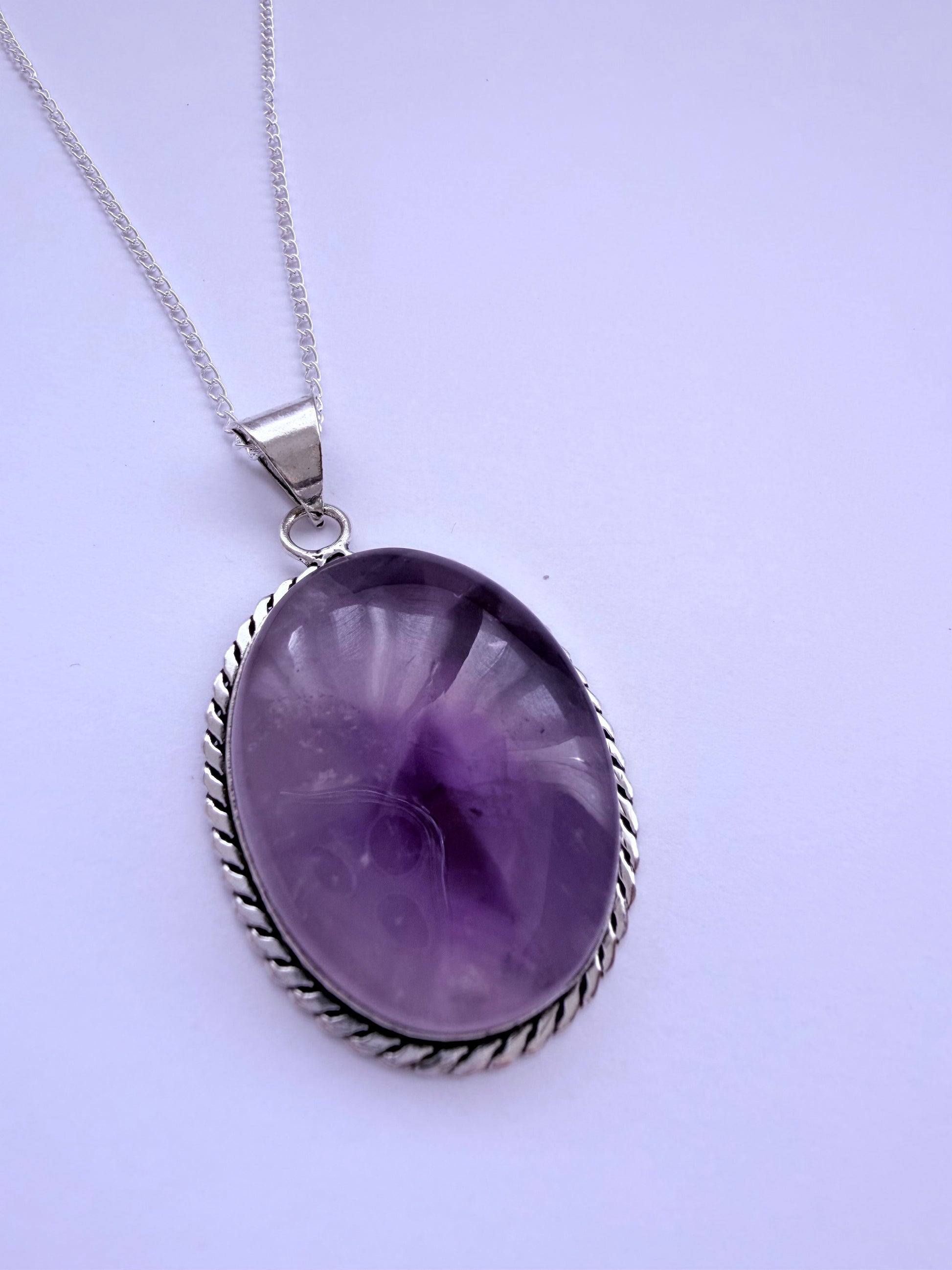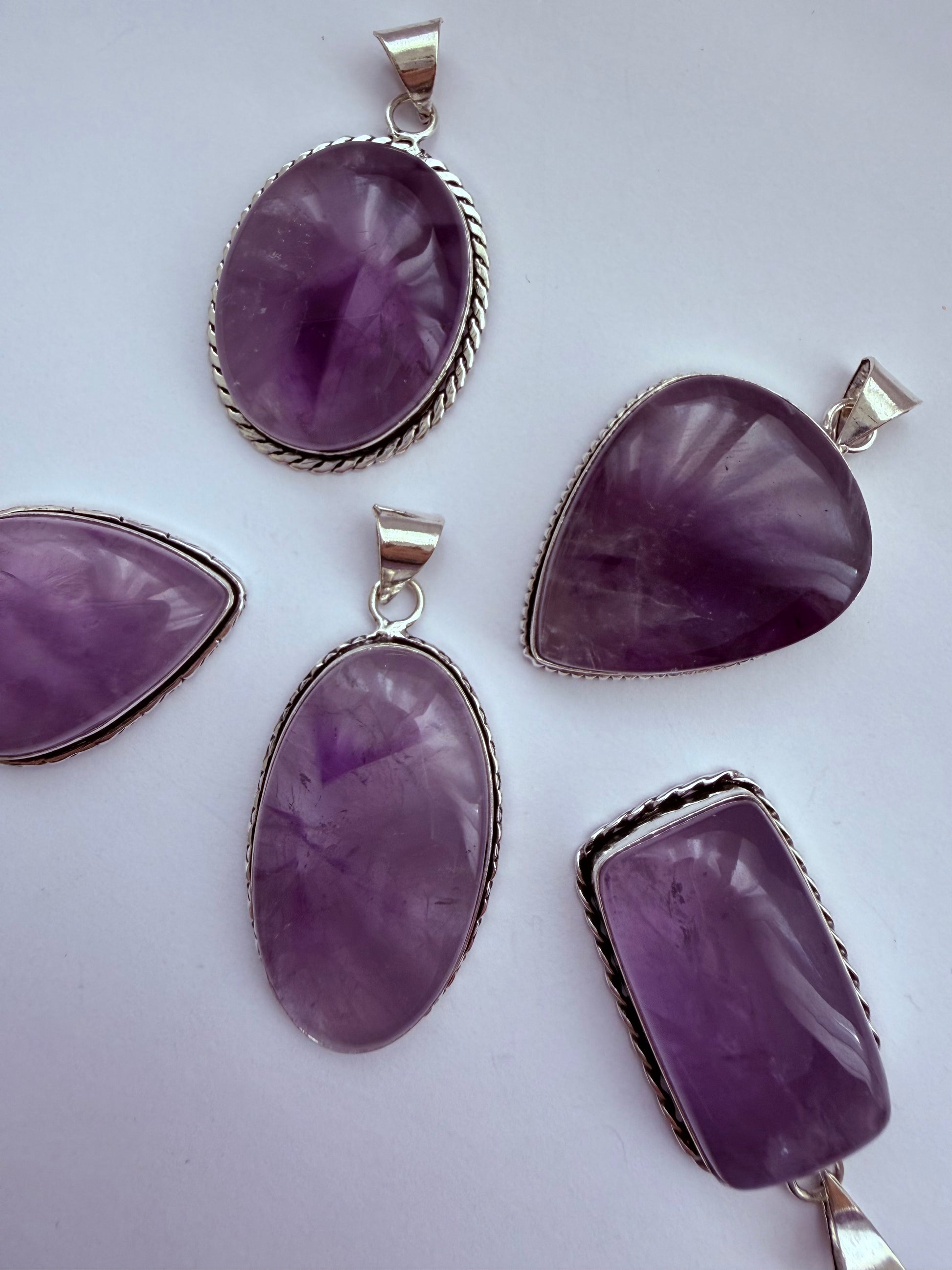 Recibirás exactamente el colgante que aparece en la fotografía. Cada pieza es única y puede presentar variaciones naturales en color, vetas o transparencias, propias de la amatista.